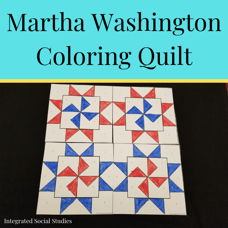 Print enough pages for each of your students and have them color their own Martha Washington Star. Cut the edges and tape together to create a giant classroom paper quilt.